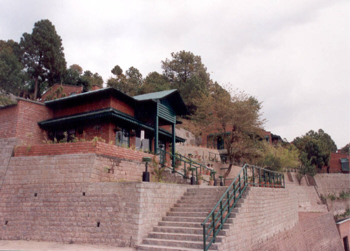 When they actually sat down to give it a name, there was a dilemma. Suggestions swung back and forth as many options were bandied about. Then somebody made a pertinent point. The retreat was in Dev Bhoomi— God’s home on earth. " Why don’t we call it Baikunth?" The reference to Lord Vishnu’s abode in heaven wasn’t missed by anyone. Thus was born Baikunth- the resort on the hills overlooking the magical hill station of Kasauli in Himachal Pradesh. Just a 60-kilometre drive from Chandigarh, a little off the Kalka-Shimla highway in the foothills of the Himalayas, Baikunth is a collection of 17-cottages set on 5-acres of hilly land at a height of 6,250 feet. Travelling off the Kalka-Shimla highway from Dharampur the road forks out at Gadkhal Bazar near Lawrence School, Sanawar, the best-rated residential school in the country. On the left is Kasauli and on the right is a meandering road surrounded by steep Shivalik range, which seemingly leads to nowhere. Five kilometers on this road and suddenly you see the green-roofed resort jutting out of the mountains. But more than that, Baikunth has come to be associated with the wind chimes that hang from the pine trees and reverberate mellifluously as the wind blows softly though the mountainscape. " In the real Baikunth Lord Vishnu and Laxmi would sit listening to Narada’s soft music. In this Baikunth we have the wind chimes," says P.D.Sharma, the bubbly general manager of the resort. The resort has taken three years to build and as it progressed, it started becoming more evident that this was not going to be your-run-of-the-mill Himachal ambience kitsch thing. Far from that, it has finally turned out to be a plush designer place for tourists with deep pockets. Truly, the past meets the future here. Amidst a typical Himachali village stands the imposing resort offering 17 cottages that have been built using local stones and local labour. The cottages landscaped on different levels are joined together by flower-bedecked paths. Himachali Ambience Says Sharma, " Baikunth is something that grows on acquaintance." While the exterior façade has been maintained to match local ambience, interiors are the surprise element. The effort, says Sharma, " was to design a place that reflected Himachali building skills from outside but from the inside make a contemporary statement of comfort." Each cottage comes with a spacious balcony overlooking the pine-covered hills where you can sip a leisurely cup of tea or enjoy a drink in the evening admiring the twinkling lights of Kasauli in the distance. But for tipplers there’s a better idea. They can let their spirits soar in the circular bar fitted with huge glass windows and comfortable sofas for a panoramic view of the mountains. For those who enjoy more pristine past-times there’s a hammock and even a real machan or a tree house where the only sounds you hear are the wind rustling softly through the chinars and the distant calls of whistling thrush and the hill munia--- species in abundance here. If you are lucky one may come and perch on the machan and also take a sneaky peck at your food. On a wintry morning you can let your eyes rest on the open blue skies and magnificent sunsets beyond. Walk over a carpet of wild flowers and chase butterflies on the hillsides. Let the cool, pine-scented air revive you as you admire the breathtaking view of the green valley below and the sweep of the Kasauli hills spreading from the TV tower to the Monkey Point. Kasauli was established in 1840 when the British bought land from a local noble for Rs. 5,000. The idea was to establish a small cantonment in the hills to fight the Sikhs. Today Kasuali is one of the most salubrious hill resorts of the north flush with wisteria, wild roses, hydrangeas, dahlias, pine, apricot and plum trees. Mythology has it that when Lord Hanumana was ferrying the Sanjeevani Booti for the injured Laxman he landed on the Kasauli hill to rest his tired arms. The place he set foot on is now called the Monkey Point, as it resembles the paw of a simian. At night, sitting in the balcony of the cottage you can see the Monkey Point twinkling on the opposite mountain. In the cottages you will not find the usual reminders of big city architectural and design sensibilities in the treatment of its rooms and courtyards as one so often finds in an increasing number of resorts in Shimla. The colours are stark---white, pastels and an occasional painting thaws the rather open and understated elegance. The interiors are contemporary. Large cottages with attached baths where one could spend an evening! The resort is more than a mere retreat on the hills of Gadkhal. It’s the stuff of Himachali mystique. The rooms provide all the conveniences of modern life. Air-conditioning, heating and television. Some cottages have private gardens and dressing rooms. As you take a leisurely walk from your cottage to the dining area take in the fresh mountain air and step right into the heart of nature. Thick deodars and pine trees will wrap you in their silence. Break the calm only to hear the chirping of the cricket and rustling of the leaves.