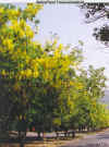 clusters of yellow flowers . About 50 of these Ambal Taas trees are lined