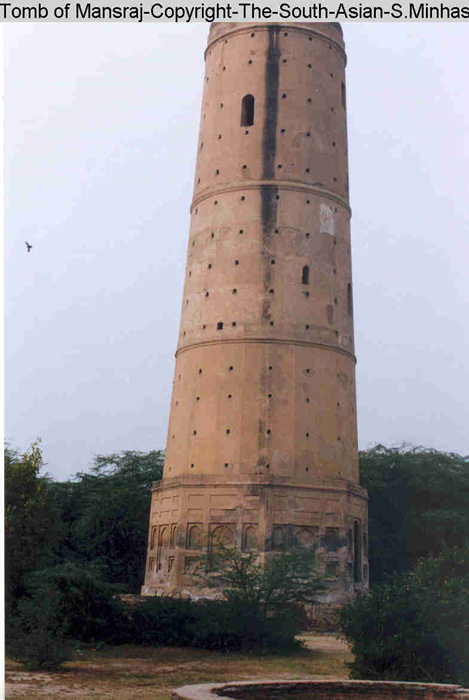 "…..Jahangirpura [now called Sheikhupura from a nickname of the emperor Jahangir] lies about 40 km. northwest of the city of Lahore in Pakistan. Its foundation was laid during the Mughal Emperor Jahangir’s reign 1605-1627. Sheikhupura was the Royal Hunting Ground. The current Tall Minar was built by Jahangir for his favourite antelope "Mansraaj" under Sikander Moin [1015-1607], as written in Tuzk-e-Jahangiri". The gravestone as per Jahangir’s instruction was built in the shape of an antelope and the epitaph written by Mullah Mohammed Hussain Kashmiri.